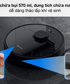 – Sử dụng hệ thống định vị LDS kết hợp cùng với cảm biến giúp lau dọn nhanh chóng đồng thời các cảm biến giúp robot tránh vật cản hiệu quả. Bên cạnh đó, các cảm biến thông minh này có thể nhận biết thảm trải sàn để tăng lực hút.