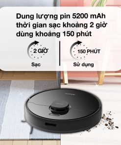 – Pin dung lượng 5200 mAh cung cấp cho máy khả năng hút bụi, lau dọn diện tích lớn chỉ với một lần sạc đầy. Khi gần hết pin, robot sẽ tự động quay về trạm sạc và tiếp tục làm sạch sau khi sạc đầy pin. Sau khi sạc đầy, robot sẽ quay trở lại vị trí đang dọn dẹp dang dở để tiếp tục chương trình làm sạch trước đó.